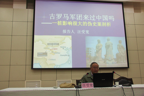 报告会上,汪先生就“古罗马军团来过中国吗”这一问题展开详细论证。首先,他对“骊靬村居民系罗马军团后裔的观点”提出质疑,认为从目前罗马史的研究成果来看,没有证据表明,卡尔莱战役中战败的罗马军团逃归郅支单于。而国内现有的文献资料也无法证明汉朝专为罗马军团的俘虏设立了骊靬县。其次,汪先生结合考古发掘资料指出,20世纪出土的汉简中有多处提到骊靬县,这些汉简的出土表明,骊靬设立在先,卡尔莱战役发生在后。 最后,汪先生依据人类群体基因学的研究,证明永昌者来村村民提供的血液样本全部为中亚和西亚血统,无法证实其为古罗马军团后裔的真实性。