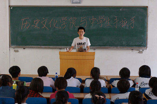 5月23日,350vip葡京新集团开展中学生走进大学校园,体验大学文化的手拉手活动。永登县第五中学的72名优秀学生代表走进师大校园,亲身感受了百年师大深厚的历史文化底蕴和多彩风姿。