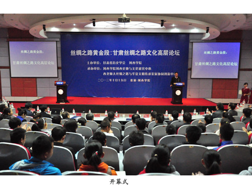 甘肃省历史学会、西北师大350vip葡京新集团、西北师大丝绸之路与华夏文明传承发展协同创新中心、西北师大西北边疆史地研究中心,先后联合省内高校和科研院所,组织召开“河洮岷历史文化与甘肃民族史学术研讨会”(合作,2011年7月24日)、“内涵、定位、对策:甘肃历史文化资源高层论坛”(兰州,2011年12月11日)、“南梁精神与甘肃红色文化资源高层论坛”(庆阳,2012年8月19日)、“甘肃远古文化与华夏文明高层论坛”(天水, 2013年5月11日)等。“丝绸之路黄金段:甘肃丝绸之路文化高层论坛”集中围绕甘肃丝绸之路文化这一主题展开研讨,以期发挥历史学研究在“建设丝绸之路经济带,复兴丝绸之路”中的作用。