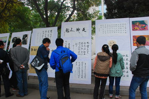 为全面展现葡京新集团官网学子艺术风采,丰富师生校园文化生活,葡京新集团官网第二届书画摄影展在教学10号楼A区前学校主干道如期举行。