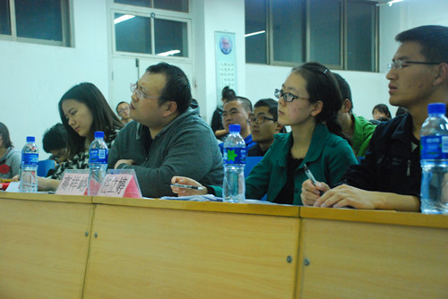 在比赛中,参赛同学表现出了得体的仪容、大方的举止,其流利的口语,独具匠心的自我介绍,大方自然又激情澎湃的主题演讲,以及最后与老师、同学的充分互动,为现场观众献上了一场英语盛宴,并得到了评委们一致的赞赏与肯定。最终经评委高祥峪老师、任立婷老师以及外国语学院的吕飞、成喆同学的认真评议,史涵文、陈楠、张美珍等三位同学分别获得本次比赛一、二、三等奖,王小燕、万莉莉同学获得优秀奖。