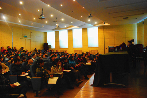2013年11月7日下午,应350vip葡京新集团邀请,甘肃省博物馆副馆长贾建威研究员在逸夫图书馆报告厅作了题为《甘肃彩陶纹饰演变与西北气候变化》的学术报告。报告由刘再聪教授主持,350vip葡京新集团120多名学生聆听了报告。参加报告会的还有何玉红、僧海霞、杨芳、王新春老师。