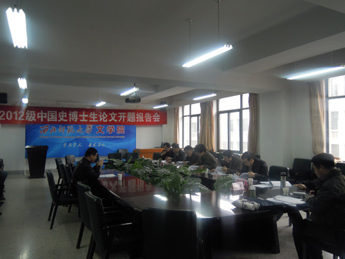 2013年11月23日,350vip葡京新集团2012级博士生开题报告会暨博士生中期考核在10B409会议室举行。开题报告会由中国社会科学院李大龙研究员主持,专家组成员有西北民族大学尹伟先教授,葡京新集团官网李并成研究员、田澍教授、张德芳教授、王三北教授、胡小鹏教授。各位专家针对每一位博士生论文的选题、结构、写作思路等方面存在的问题交换了意见。李大龙研究员就五位博士生论文选题普遍存在的问题做了分析,并提出了具体修改意见。最后,田澍教授就当前为了进一步提高葡京新集团官网博士生论文质量提出了新要求。经过专家评审,2012级五位博士生顺利通过中期考核。葡京新集团官网100多名师生参加了报告会。