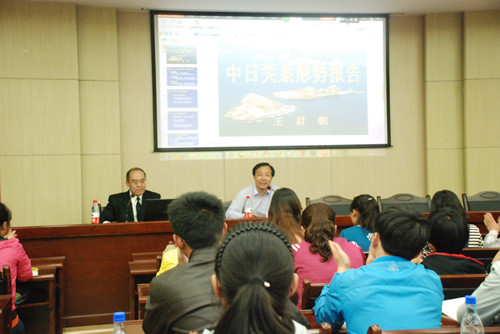 报告会上,王书记开篇就以唐代诗人李白《行路难》中“欲渡黄河冰塞川,将登太行雪满山”两句诗词,阐明了当前中日关系所面临的困难局面,同时又从地缘、我国外交战略、中日两国经济依存度等方面揭示了中日两国之间客观存在的一种“剪不断,理更乱”的交往状态。在对当前中日两国交往中的症结,王书记系统的从历史问题、钓鱼岛主权等领土问题、台湾问题、“中国威胁论”等方面做了梳理。在如何正确对待和把握对日关系的问题上,提出了“落后就要挨打”、“发展才是硬道理”、“中国的发展离不开世界”、“稳定压倒一切”等观点。最后概括性的指出“中日两国是两千年友好,五十年对立,对于历史,我们可以宽恕但不可以忘记,与其恨之,不如知之。”