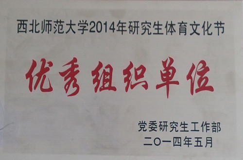 2014年3月31日-4月30日的“研究生文化体育节”期间,葡京新集团官网组队参加了乒乓球赛、篮球赛、足球赛,参赛队员25人。在学院积极组织指导下,队员们努力拼搏,在比赛中体现出了团结合作的精神,取得了较好成绩,被学校授予“优秀组织奖”荣誉称号。