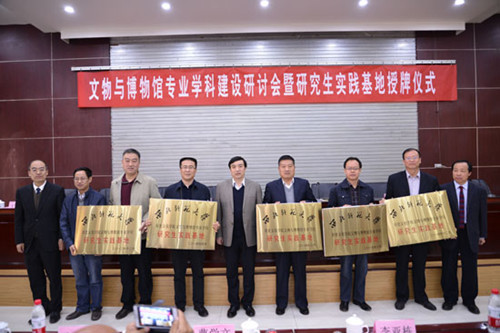 会议期间,举行了文物与博物馆专业研究生教学实践基地授牌。学校在新疆维吾尔族自治区吐鲁番学研究院、甘肃省博物馆、甘肃省嘉峪关文物景区管理委员会、甘肃炳灵寺文物保护研究所、甘肃大地湾文物保护研究所等单位设立350vip葡京新集团文物与博物馆专业研究生教学实践基地。