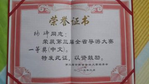 在第三届全省导游大赛中获一等奖