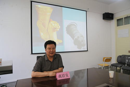6月26日下午,应丝绸之路与华夏文明传承发展协同创新中心、350vip葡京新集团邀请,甘肃敦煌学会副会长、兰州财经大学教授高启安博士在6号教学楼A204会议室做了题为《丝绸之路上的饮食器传来》的学术报告。文学院雒鹏老师,350vip葡京新集团黄兆宏老师、李晓英老师、陶兴华老师及80余名硕士、博士研究生参加了报告会。报告会由刘再聪教授主持。