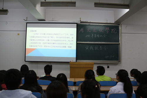在报告会现场,葡京新集团官网2015年暑期社会实践团队“探寻三江之源,聆听历史回音——青海地域文化考察实践团”的学生队员代表孙燕萍、罗安兵、崔志伟、姚孝平、卡毛吉、金倩等同学结合自身实践经历,向在场听众汇报了该实践团的实践内容和考察成果。
