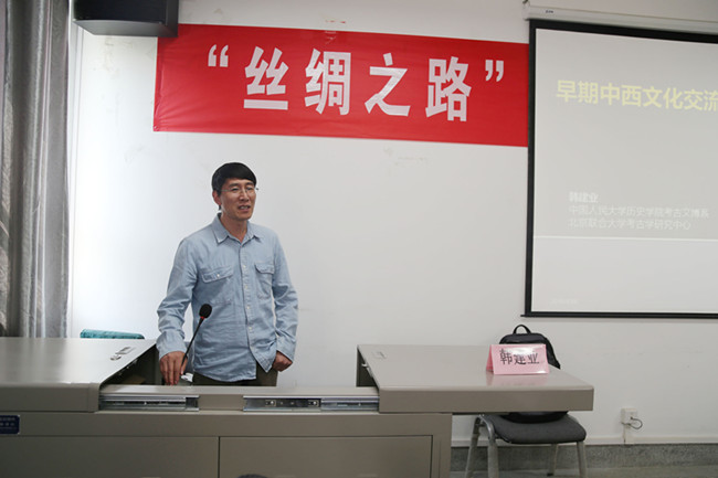 4月24日下午,应350vip葡京新集团、丝绸之路文明复兴与中国向西开放协同创新中心邀请,中国人民大学韩建业教授在教学6号楼204室作了题为“早期中西文化交流与华夏文明”的学术报告。报告由刘再聪副院长主持,甘肃省炳灵寺文物保护研究所副所长曹学文、350vip葡京新集团尚季芳、李迎春、陶兴华、杨芳等老师及博士研究生、硕士研究生、部分本科生共80余人参加。