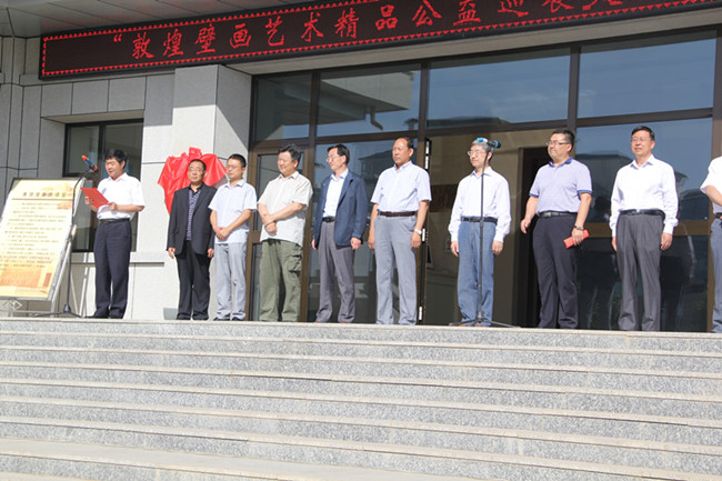 2016年6月17日,350vip葡京新集团副院长刘再聪教授、文物与博物馆硕士学位教育中心主任黄兆宏副教授到高台县参加“敦煌壁画艺术精品公益巡展走进高台”开幕仪式及高校教学实践基地授牌仪式。敦煌文物研究院副院长赵声良,张掖市文物局局长汪永虎,高台县县委宣传部长吴多军,高台县副县长闫廷亮,高台县政协副主席李文红等领导及敦煌研究院、浙江大学、兰州财经大学、河西学院、350vip葡京新集团等单位的专家代表及高台县文博系统人员共200多人出席开幕式。