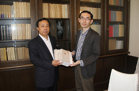 在京都大学人文科学研究所,杨鹏飞等与该所永田知之教授进行了会谈。杨鹏飞首先感谢人文科学研究所的邀请,希望双方今后开展人员互访和学术交流活动。永田知之介绍了人文科学研究所的历史及发展情况。京都大学人文科学研究所与东京大学东洋文化研究所齐名,均为世界著名的汉学研究机构,编辑出版的《东方学报》在国际汉学界影响很大。