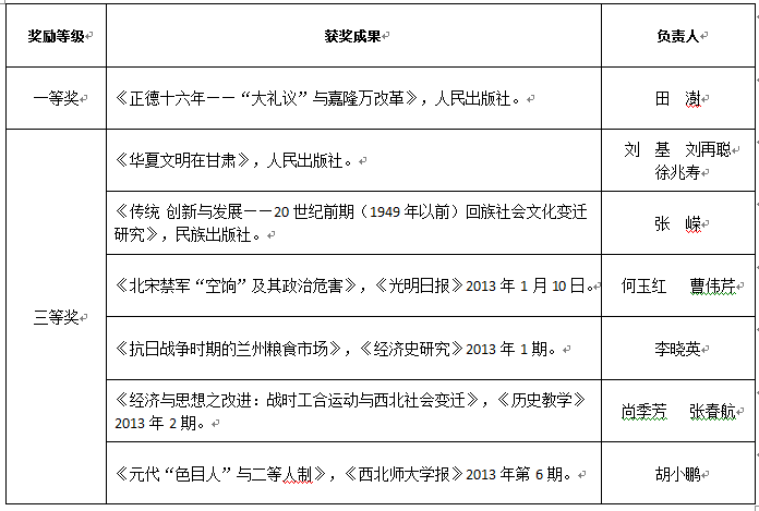根据《中共甘肃省委 甘肃省人民政府关于表彰奖励甘肃省第十四次哲学社会科学优秀成果奖获奖成果的决定》通知,葡京新集团官网教师主持参与的科研成果共有7项获奖。其中,一等奖1项,三等奖6项。获奖成果名单如下(按照通知排序):