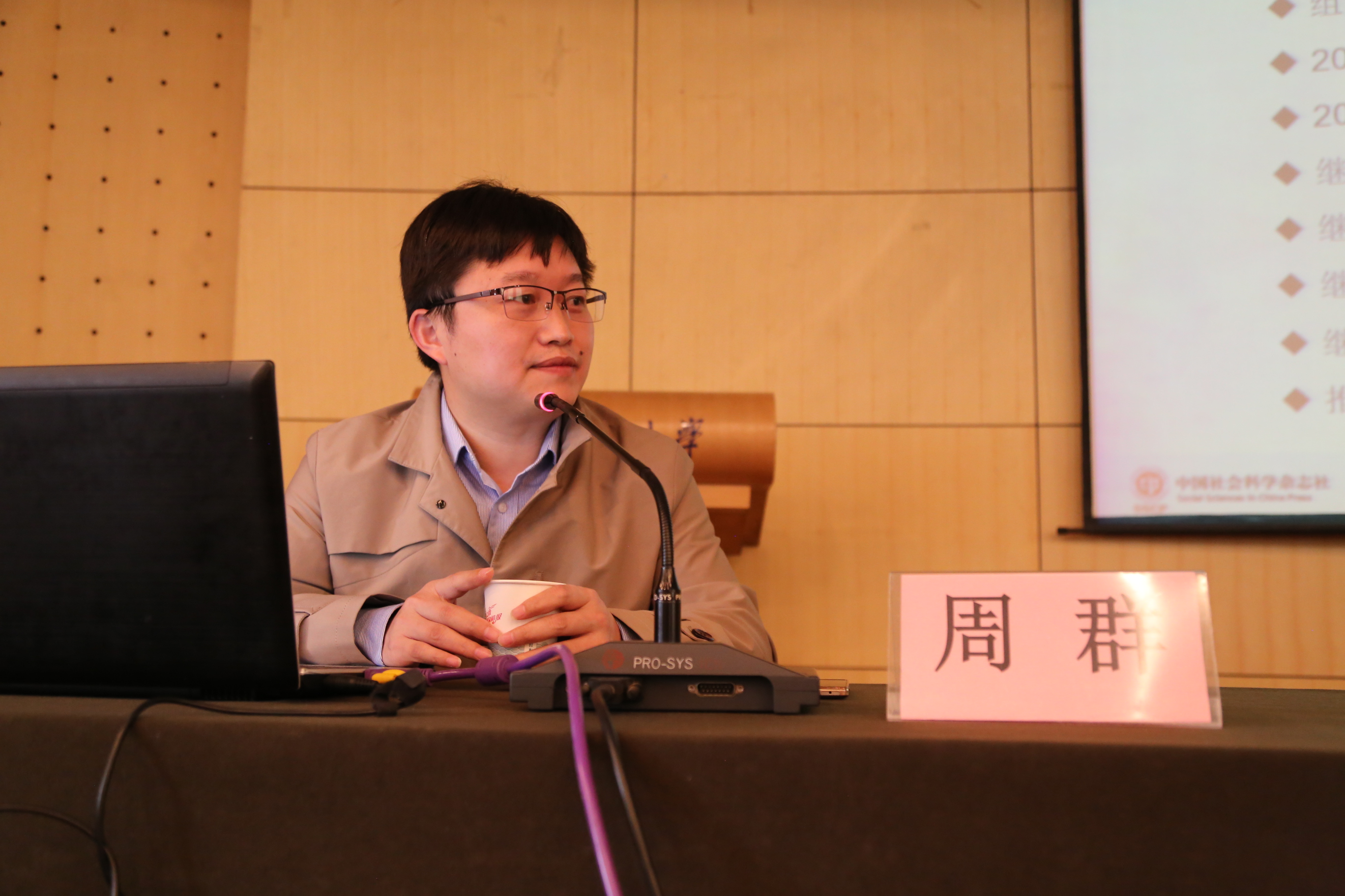报告中,周群主任首先介绍了《历史研究》的四个发展阶段,总结1978年以来史学发展存在的问题,如迷信西方史学理论;视野较窄;研究趋于碎片化,理论研究不足;急于出成果,看书时间少,原创不足等问题。其次,介绍了《历史研究》今后的发展计划,如坚持唯物史观、完善梯队建设;开门办刊,创办论坛,举办“青年史学家论坛”;开通《历史研究》公众号;改办《历史研究》为月刊等。再次,还介绍了《历史研究》的审稿流程。