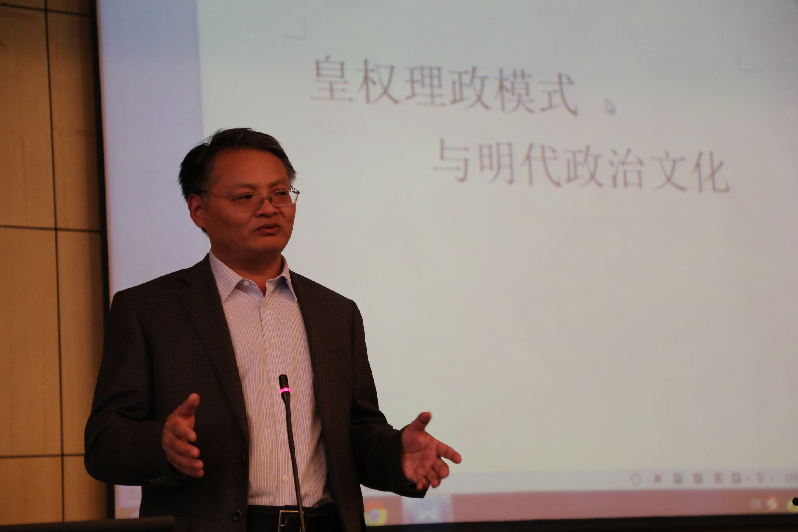 2016年10月9日下午,应350vip葡京新集团邀请,吉林大学王剑教授在逸夫图书馆学术报告厅作了题为《皇权理政模式与明代政治文化》的学术报告。报告由副校长田澍教授主持,副院长刘再聪、副院长何玉红、秦丙坤、郑峰、僧海霞、张继刚等老师以及博士、硕士研究生、本科生等200余人聆听了此次讲座。