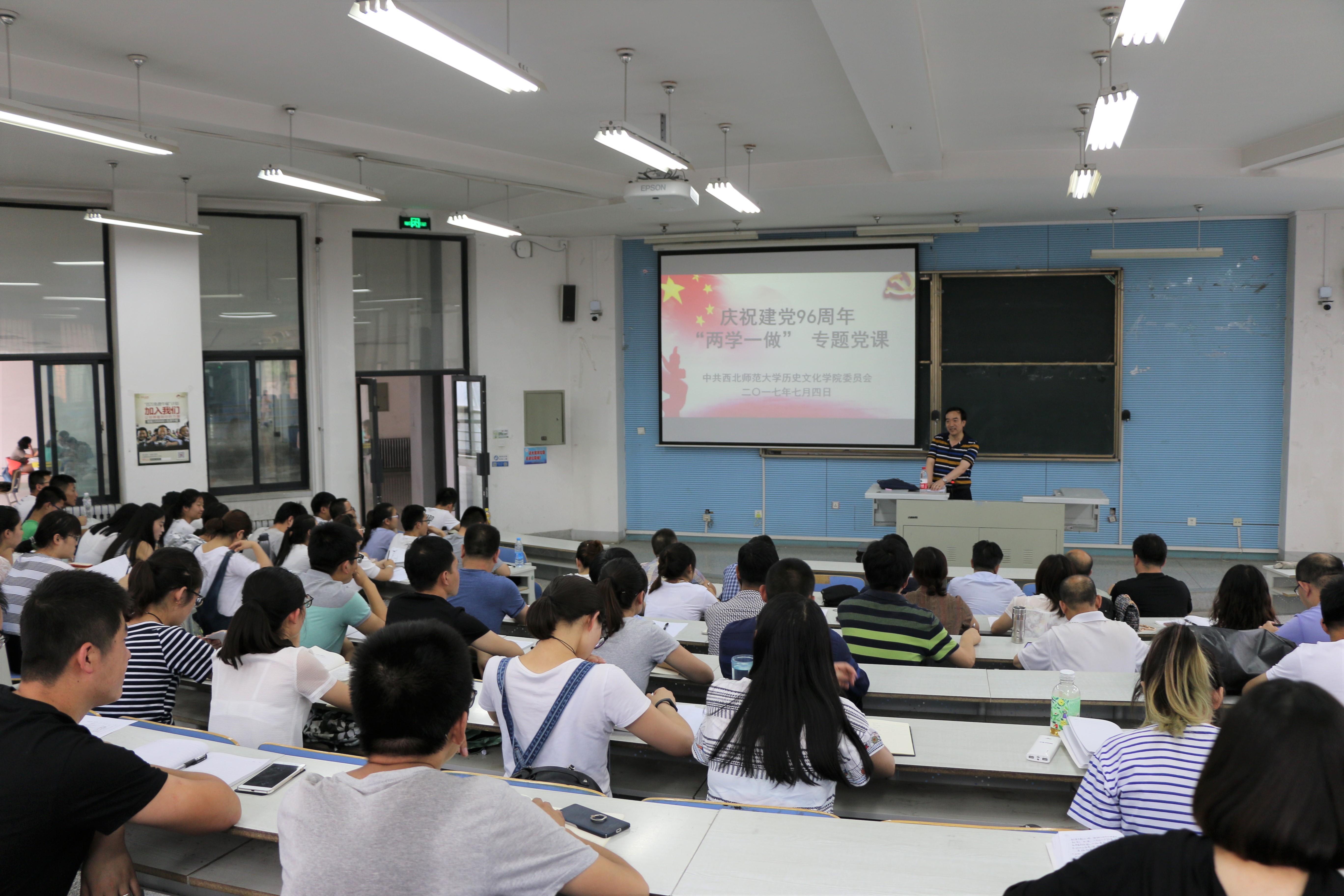 为迎接庆祝中国共产党建党96周年,学习贯彻我省第十三次党代会精神,喜迎党的十九大胜利召开,深入落实“两学一做”教育实践活动常态化。7月4日下午,我校党委常委、副校长田澍教授结合党的纪律、当前我省的发展核心问题以及我校学科建设、基层党建、青年学生发展等问题为葡京新集团官网全体党员上了一节深刻的专题党课。