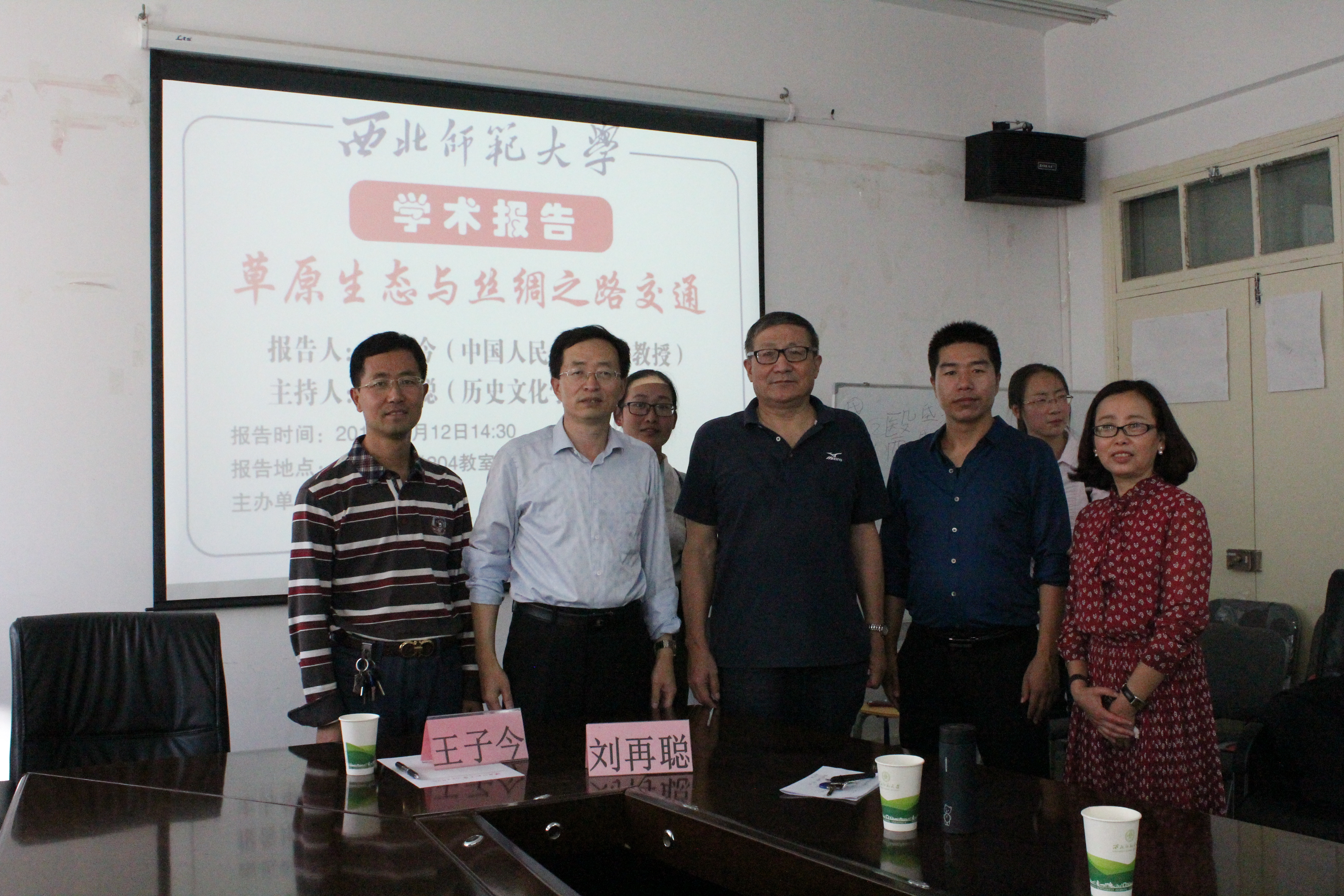 2017年9月12日,应350vip葡京新集团、丝绸之路文明复兴与中国向西开放协同创新中心邀请,中国人民大学博士生导师王子今教授在教学6号楼204会议室做了题为《草原生态与丝绸之路交通》的学术报告。葡京新集团官网教师张嵘、陶兴华、李迎春、张继刚及学生近百人参加了报告会,刘再聪副院长主持报告会。