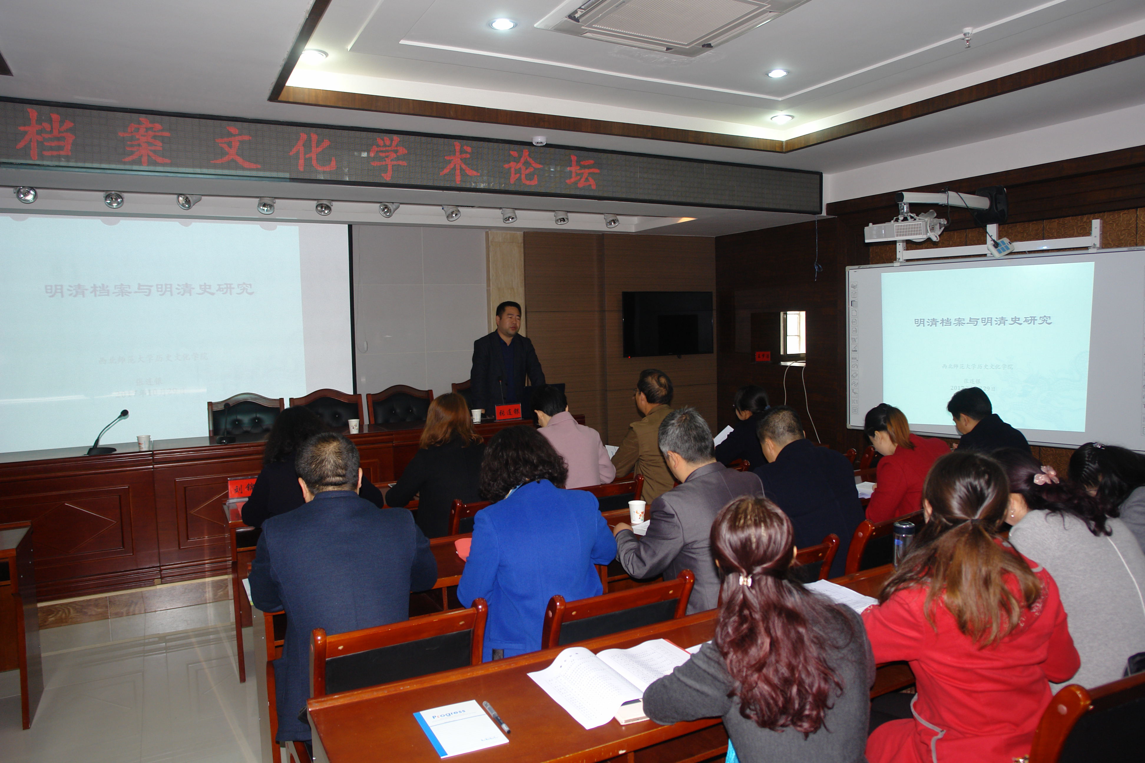 2017年10月28—30日,西汉水流域档案文化学术论坛在陇南市西和县召开。甘肃省档案学会、天水市、汉中市、宝鸡市、广元市、陇南市档案系统参加学术论坛。葡京新集团官网教师张连银、硕士生李江龙、王梦洁应邀参加,张连银老师在会上作了主题为“明清档案与明清史研究”的报告。尚季芳老师指导的硕士生李江龙代表王梦洁、胡君英同学向与会专家汇报了利用清代西和衙门档案资料研究的阶段性成果。西和县档案馆系葡京新集团官网文物与博物馆专业实践基地。李江龙、三位同学的学位论文文献资料主要利用西和县档案馆的清代档案材料。