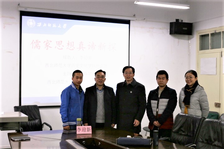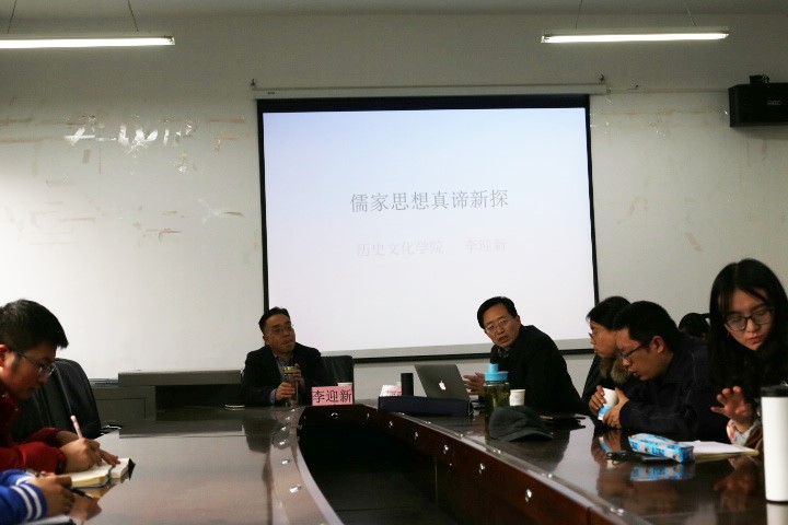 2017年12月14日,350vip葡京新集团党委书记李迎新研究员在6号楼204会议室做了题为“儒家思想真谛新探”的学术讲座,350vip葡京新集团副院长刘再聪教授主持了报告会,全院师生40多人聆听了报告会。