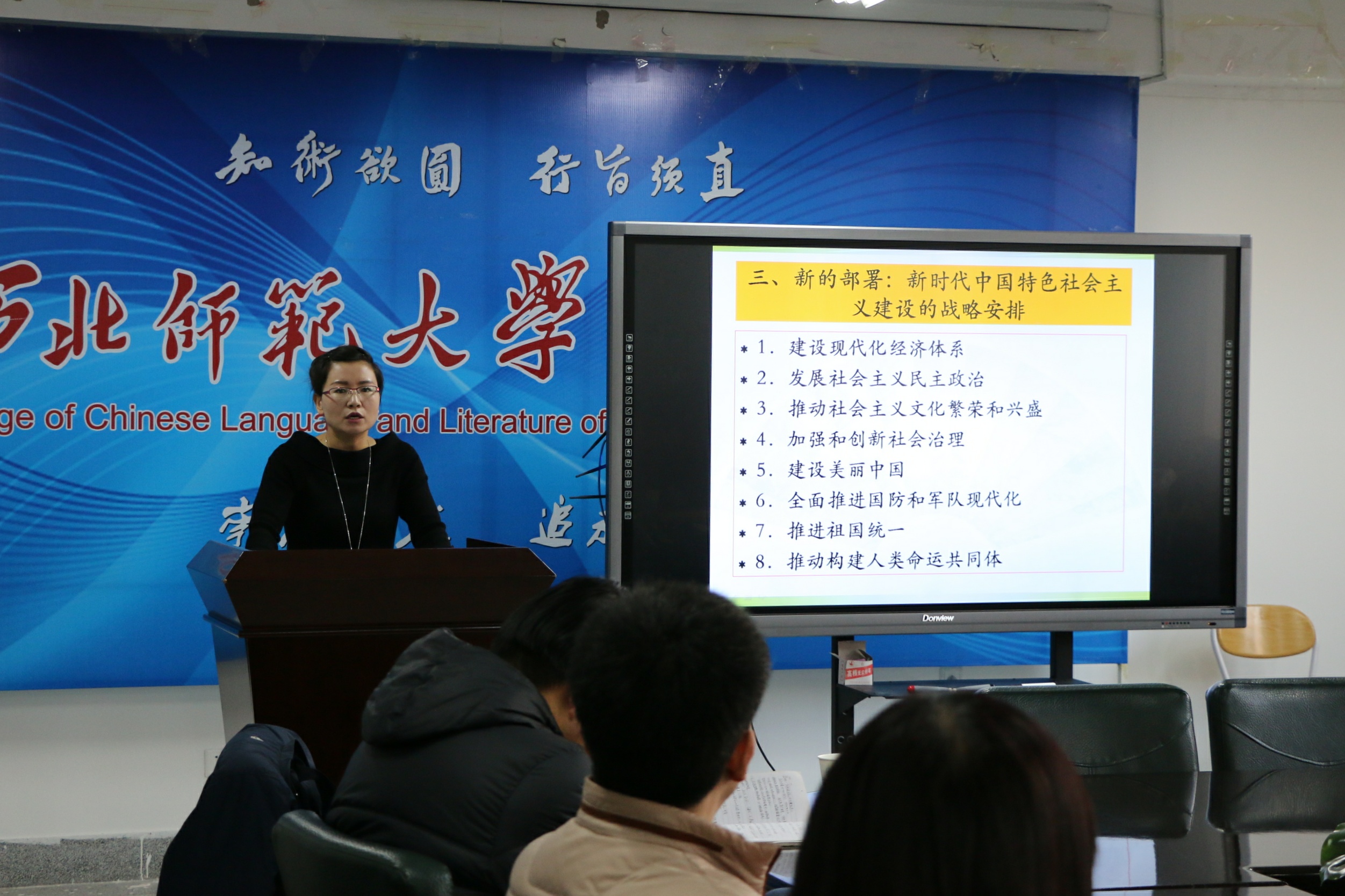 根据学校党委关于深入学习十九大精神的部署,12月20日下午,由学校党委常委、副校长田澍教授和马克思主义学院刘瑞兰老师组成的学习十九大精神“1+1”宣讲对谈小组进入葡京新集团官网,面向葡京新集团官网全体教职工党员以及学生党员进行了十九大精神宣讲与对谈。