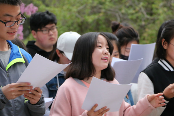 本次“丁香花开”诗词文化节围绕“诗馥百结香,经典咏流传”的主题进行。当天下午一曲惊鸿舞拉开“丁香花开”的序幕,随后是诗歌朗读。抑扬顿挫、慷慨激昂的《沁园春·长沙》,豪放浪漫、奇异瑰丽的《梦游天姥吟留别》,情意深重、朦胧美感的《再别康桥》。声情并茂的朗诵,带给人们无限的遐想,激励人们满心的遐思。中国独有的汉字,不同风格的朗读,会让人有不同的心绪。念出的每一个字, 都带着诵读者特有的感情, 让听者触碰到那轻轻的心跳,与你融为一体。这里、西北偏北,这里、朗朗书声,这里、丁香花开。活动举办期间,引来不少同学围观,共同感受中华传统诗词文化的魅力。