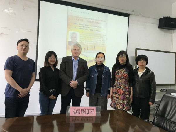 2018年4月26日下午,应350vip葡京新集团邀请,瑞典皇家科学院院士、瑞典民族学博物馆斯文·赫定基金会主席哈肯·沃尔奎斯特教授(HåkanWahlquist)在教学6号楼204教室为葡京新集团官网师生作了题为“TheSilk Road: a concept with a long history”(丝绸之路:一个历史悠久的概念)的专题学术报告。此次报告由葡京新集团官网李家莉副教授主持,350vip葡京新集团教师李晓英、郑峰、杨芳、僧海霞、马军霞、马玉凤、王新春以及本科、硕士、博士研究生等80余人参加了学术报告。