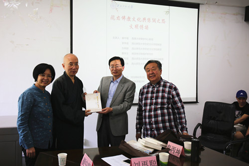 6月2日,在教学6号楼204会议室,崔中慧教授一行与葡京新集团官网李并成教授等围绕“陇右佛教文化与丝绸之路文明传播”进行专题座谈。座谈会由刘再聪教授主持,黄兆宏副教授、秦丙坤副教授,炳灵寺文物保护研究所曹学文副所长,我校研究生、本科生共60多人参加了座谈会。