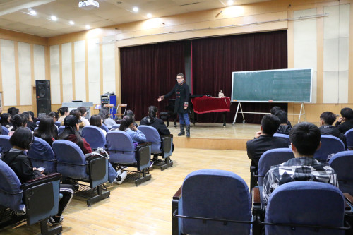 讲座中,甘老师以其幽默风趣的语言和生动形象的讲解,深入浅出地分析了人体发声的原理、正确的发声方法、气息的运用技巧等。甘老师强调要通过气息的震动来发声,并非用喉咙大声喊,气息震动产生的声音饱满浑厚,声带不会过于紧张,而通过“喊”的方式发出的声音干涩无力,而且时间一长嗓子肯定会嘶哑。这也正是为什么许多人长时间大声讲话后嗓子会疼,甚至有些老师经常被咽炎等困扰的主要原因。甘老师边讲边示范,指导同学们反复练习,现场气氛非常活跃。最后,甘老师鼓励同学们一定要勤于练习,熟练地掌握发声和气息技巧,将来才能有一副好“嗓子”,让学生喜欢听到你的声音。