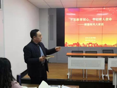 3月1日,葡京新集团官网举办了以“不忘教育初心,牢记育人使命----师德师风大家谈”为主题的 “立师德、铸师魂开学第一讲教师教育活动”。本次活动由党委书记李迎新主持,学院全体教职工以及本科生、研究生共80余人参加了本次活动。
