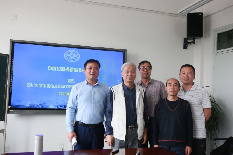 2019年5月29日下午,应350vip葡京新集团邀请,四川大学中国俗文化研究所所长、教育部人文社会科学重点研究基地中国俗文化研究中心主任、博士生导师张弘教授,在教学7号楼308会议室作了题为“印度初期佛教的非宗教性”的学术报告。报告由秦丙坤副教授主持,院长何玉红教授、国际文化交流学院副院长杨同军教授及50余名博、硕士研究生参加了报告会。