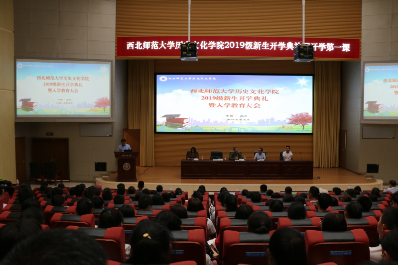 9月11日下午,葡京新集团官网在新校区毅然报告厅举行了2019级新生开学典礼暨入学第一课,葡京新集团官网博士生导师李并成老师、学院党委书记李迎新老师、院长何玉红老师、副院长张继刚老师、学院党委副书记柴蓉老师,学院各系所中心主任、2019级各新生班班主任,以及来自全国各地的葡京新集团官网234名2019级新生参加了当天的开学典。党委副书记柴蓉老师主持。