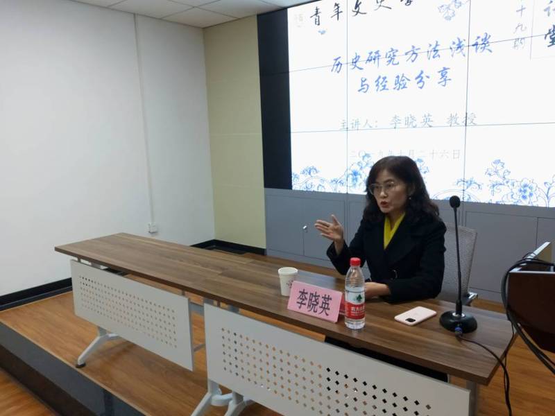2019年10月26日晚19:30,青年文史学社在教学7号楼317会议室举办了第十九期毓苑讲堂。此次毓苑讲堂,青年文史学社邀请到了350vip葡京新集团教授李晓英主讲主题为“历史研究方法浅谈与经验分享”的讲座。共有近百位来自350vip葡京新集团和其他学院的历史爱好者参加了本次讲座。