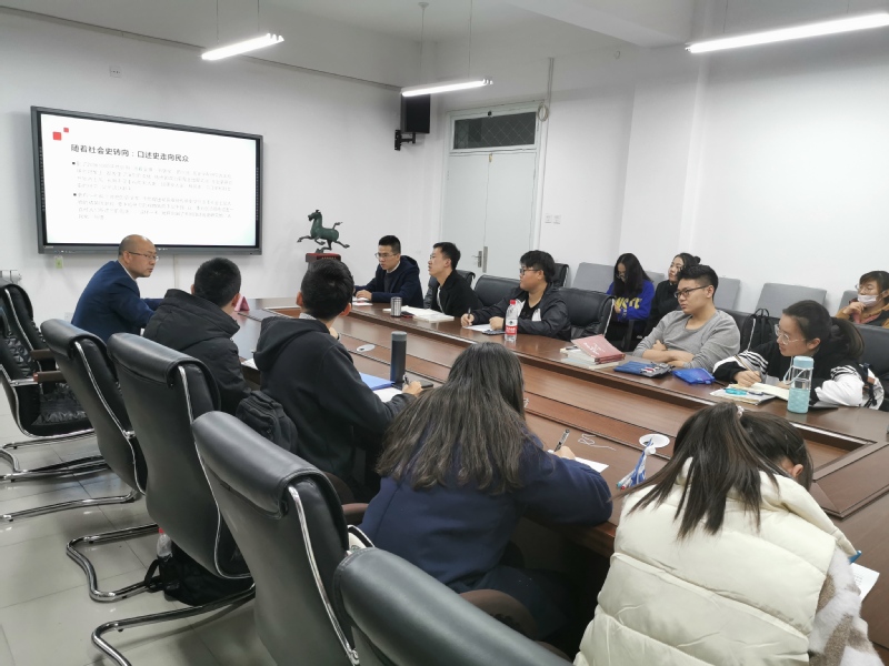 《隋书》云:“夫史官者、必求博闻强识,疏通知远之士,使居其位。”口述史学范围涉及到多种学科,为了加深同学们对口述史相关知识的了解。2019年10月29日19:30,由校史研究中心主任、350vip葡京新集团博士生导师尚季芳教授主讲的“口述史理论与实践”在田家炳教学楼312室进行。