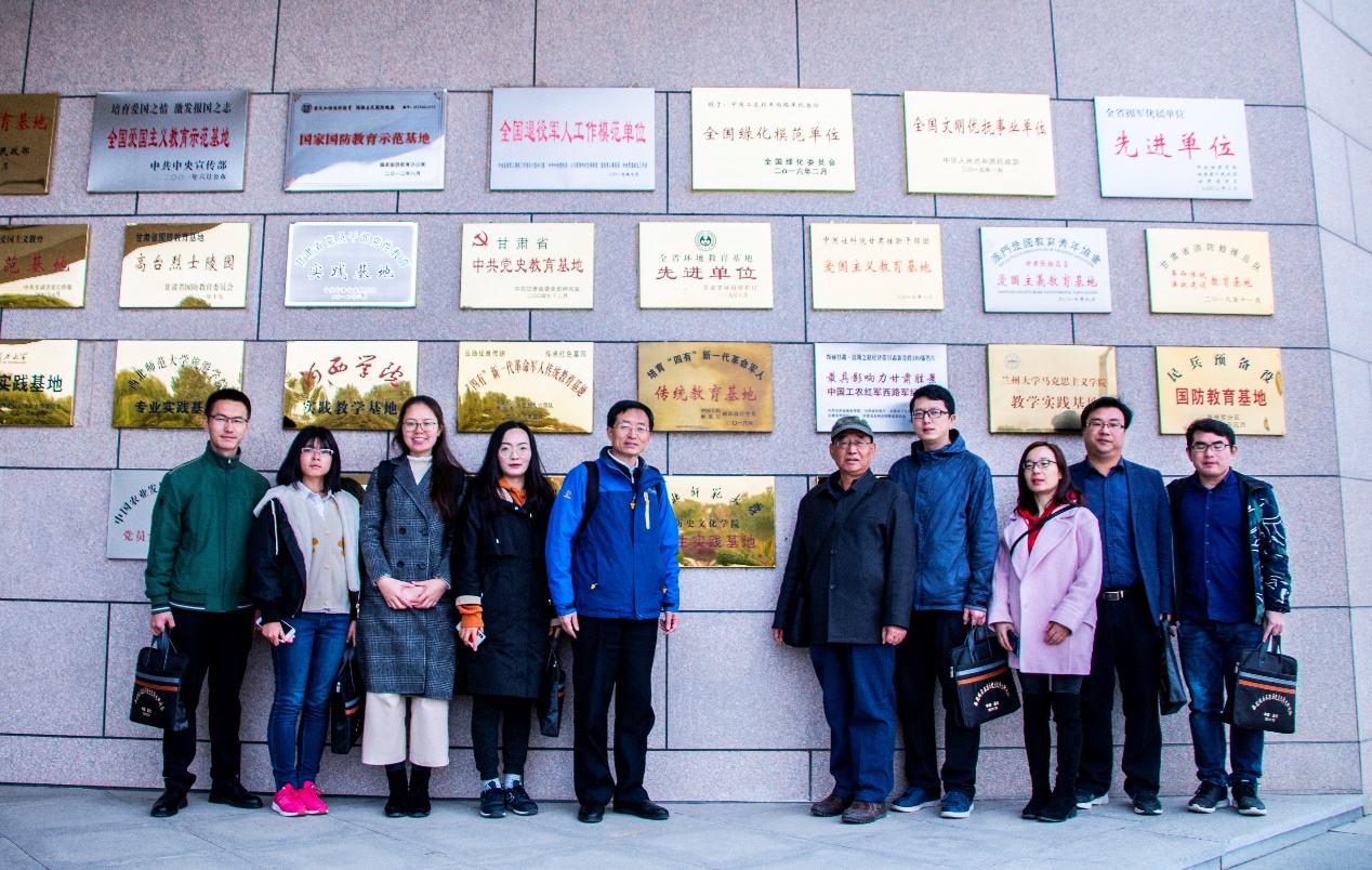 为深入贯彻落实习近平总书记视察甘肃的重要讲话和指示精神,2019年10月25日上午,350vip葡京新集团刘再聪教授、黄兆宏副教授、杨芳副教授、张丽娟讲师以及十余名师生前往高台红西路军烈士陵园,瞻仰中国工农红军西路军烈士纪念碑和阵亡烈士公墓,参观高台县中国工农红军西路军纪念馆,接受中国共产党党党史和革命传统教育,并在纪念馆一展室正门前同“350vip葡京新集团学生实践基地” 标牌合影留念。