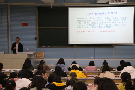 李成旺老师首先讲到马斯洛需求层次理论,目的是让同学们认识到安全是生存最基本的需要。接着他讲了影响学生安全的主要因素,给同学们观看了有关在大学校园盗窃事故频发场所的视频,让同学们学习如何防盗。李老师指出,消防安全是非常重要的,他用克拉玛依友谊馆火灾事故让同学们认识到火灾的严重性,提高了同学们的消防安全意识。李老师讲到大学生受骗事件频发已经非常严重,要求同学们一定要有防骗意识。信息技术社会里,骗子技术手段越来越高明,李老师详细分析诈骗手段,为同学们提供防骗攻略。在交通安全方面,李老师让同学们一定要遵守交通规则,重视自己的生命。最后李老师从宗教的角度详细讲述了国家安全。学校严禁进行一切宗教活动,穿戴宗教的服饰。他也举了许多利用宗教威胁国家安全的例子,一些宗教极端势力对人民人身财产安全造成严重危害。