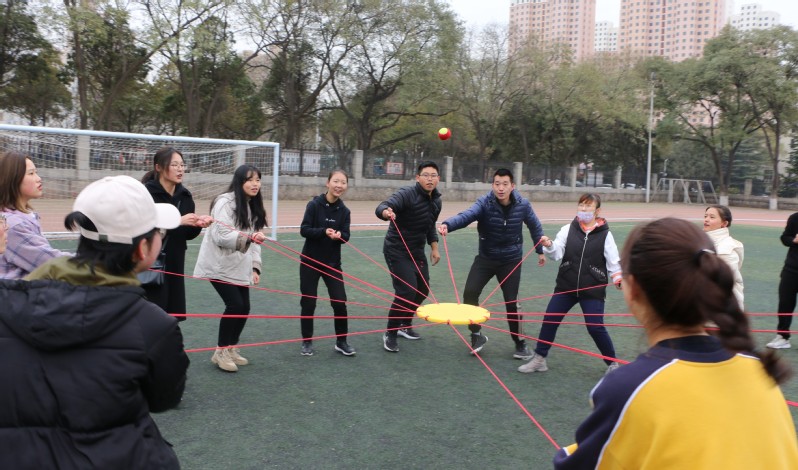 在活动过程中,甘肃力行企业管理咨询服务公司的带队老师首先将3个班分为9个战队,开始了团队组建,每个队也分别向大家展示了自己的队名、队歌与团队造型。在进行热身游戏后,素质拓展活动正式开始。