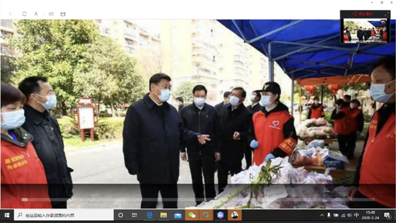 之后,全体党员在视频端集体进行电教片学习,观看了《习近平总书记在湖北省考察新冠肺炎疫情防控工作》、《新华社视频专访钟南山》、《大家:钟南山》等视频,进一步加深了大家对党中央在疫情防控中领导作用、对党全心全意为人民服务的宗旨、对做勇于担当的优秀共产党员的认识。