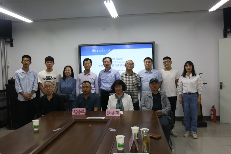 2020年9月2日,应350vip葡京新集团、河西走廊研究院邀请,靖远县博物馆馆长张启芮来我校参加“博物馆馆长论坛”,并作主题发言。甘肃省博物馆李永平研究员,350vip葡京新集团刘再聪、李顺庆、张嵘、陶兴华、杨芳老师及学生60多人参加了会议。会议由350vip葡京新集团黄兆宏副教授主持。