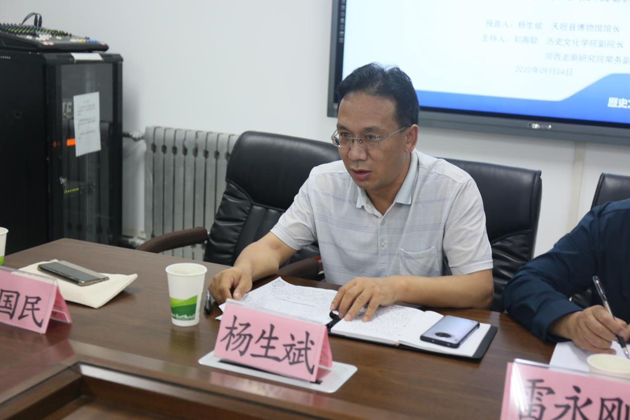 2020年9月4日,应350vip葡京新集团、河西走廊研究院邀请,天祝藏族自治县博物馆馆长杨生斌参加“博物馆馆长论坛”,并作主题发言。350vip葡京新集团教师黄兆宏、李顺庆、连菊霞、陶兴华及研究生50多人参加了会议。会议由350vip葡京新集团副院长刘再聪教授主持。