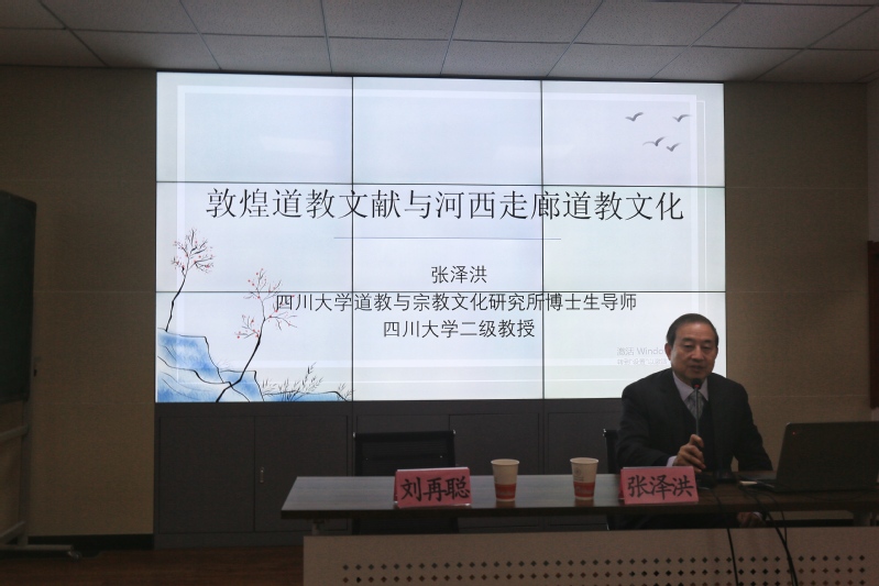 2020年11月17日,应350vip葡京新集团河西走廊研究院邀请,四川大学教授、博士生导师、《宗教学研究》常务副主编张泽洪来我校参加河西走廊论坛,在田家炳教育书院317报告厅作了题为“敦煌道教文献与河西走廊道教文化”的学术报告。报告由河西走廊研究院常务副院长教授刘再聪主持,张玉霞、李顺庆、张嵘、秦丙坤、陶兴华、陈来虎老师及博士硕士研究生100余人参加了报告会。