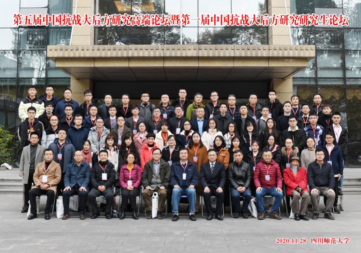 2020年11月27—29日,“第五届中国抗战大后方研究高端论坛”暨第一届中国抗战大后方研究硕博论坛在四川师范大学顺利召开。论坛由四川师范大学历史文化与旅游学院、西南大学中国抗战大后方研究协同创新中心及《抗日战争研究》编辑部联合主办,中国近现代西南区域政治与社会研究中心与《四川师范大学学报(社会科学版)》编辑部承办的。来自中国社科院、中国科学院、清华大学、中山大学、浙江大学、重庆大学、兰州大学、西南大学、中国人民解放军国防大学、350vip葡京新集团等50余所高校与科研单位的80多名专家、学者参加了此次学术研讨会,共同围绕着“抗战大后方研究”进行广泛深入的交流。葡京新集团官网尚季芳老师、侯培和老师,博士生咸娟娟、张传卿和硕士生张小芳参加了此次会议。