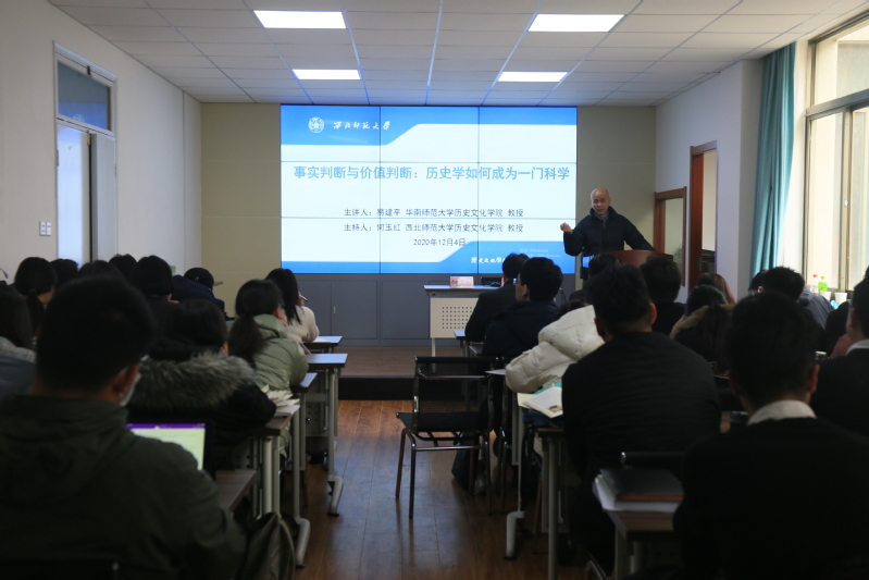 2020年12月4日,华南师范大学350vip葡京新集团易建平教授应350vip葡京新集团邀请作了题为《事实判断与价值判断:历史学如何成为一门科学》的学术报告。此次讲座由葡京新集团官网何玉红教授主持,学院教师李晓英、潘春辉、僧海霞、郑峰、张玉霞、马军霞、吕海军、杨尚荣,云亭班学生、研究生等七十余名师生参加了本次讲座。