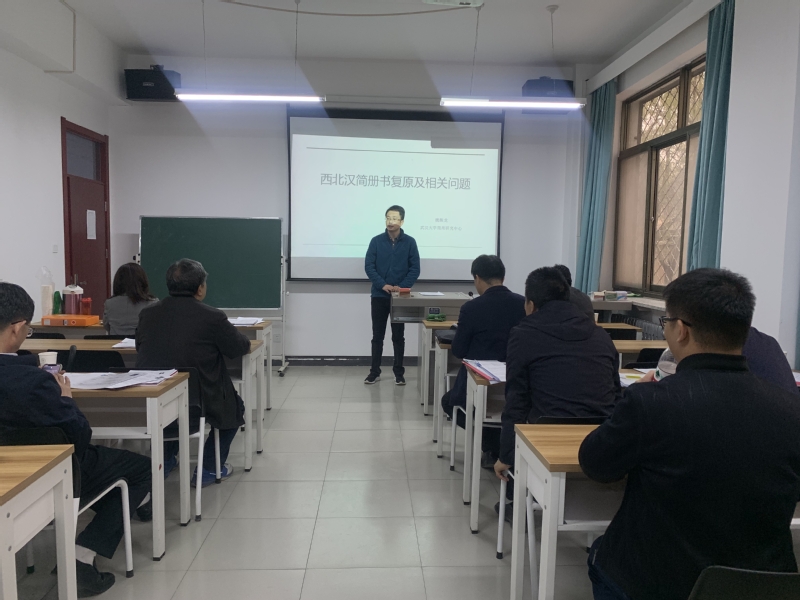 魏振龙博士分享的主题为“西北汉简册书复原及相关问题”,他从汉简册书复原的缘起与发展、汉简册书复原尝试、文本整理在西北汉简研究中的作用三个方面进行论述。他表示,册书复原的未来空间巨大,且簿籍文书册的复原是重心,他将在这一方面进行更深层次的研究。