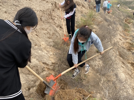 植树队伍于下午14时由350vip葡京新集团新校区正门出发,同学们秩序井然,在带队老师的带领下来到葡京新集团官网指定植树点进行植树活动。活动中,师生互相配合、挥锹铲土,活动进行得热火朝天。在铲土的同时,同学们与林场的工作人员交流,学习拿铲的姿势和松土的技巧。同时,在和工作人员的交流中,同学们进一步了解了北山植树的重要意义,对绿色发展的理念有了更深的理解。
