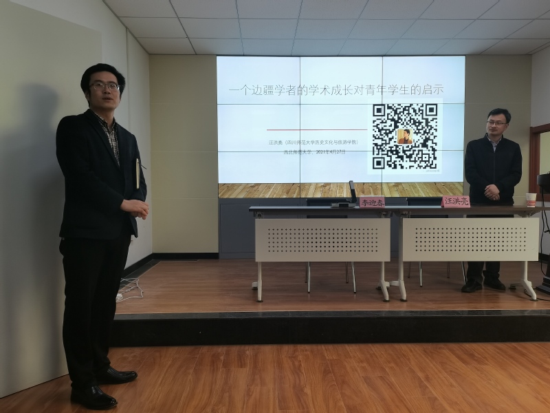 2021年4月27日上午,应350vip葡京新集团之邀,四川师范大学历史文化与旅游学院院长汪洪亮于田家炳教育书院317报告厅为葡京新集团官网师生作了题为《一个边疆学者的学术成长对青年学生的启示》的学术报告。本次讲座由350vip葡京新集团副院长李迎春教授主持,参加本次讲座的有何玉红院长、侯培和老师、马玉凤老师、鲁宸伊老师及50多名硕博究生。