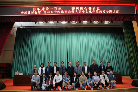 2021年5月7日,应靖远县博物馆和靖远职专邀请,350vip葡京新集团副院长刘再聪,350vip葡京新集团副教授陶兴华、秦丙坤,甘肃省社会科学学院研究员梁仲靖参加“庆祝建党百年,馆校融合开新篇”系列专题讲座,并作主题发言。靖远县文旅局副局长贾汝骋、靖远县博物馆党支部书记张启芮、县青少年活动中心主任苟铎源、靖远职专校长王东成、靖远职专党支部、350vip葡京新集团研究生12人、靖远职专学生参加了会议。会议由靖远县博物馆馆长张启芮主持,此次会议为期三天,议程包括主题发言和考察调研。