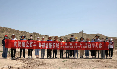 于5月9日上午,考察团参观了靖远县博物馆、红军纪念馆,党员秦丙坤、陶兴华、魏娜娜、李龙飞宣读了入党誓词。下午开展了黄河沿线长城遗址和烽燧的调研活动,进一步加强了大家对革命历史的深入学习和红军精神的传承。深刻贯彻习近平总书记在党史学习教育动员大会上的重要讲话,引领研究生、党员、入党积极分子重温伟大历史,铭记党的初心和使命,传承红色基因。