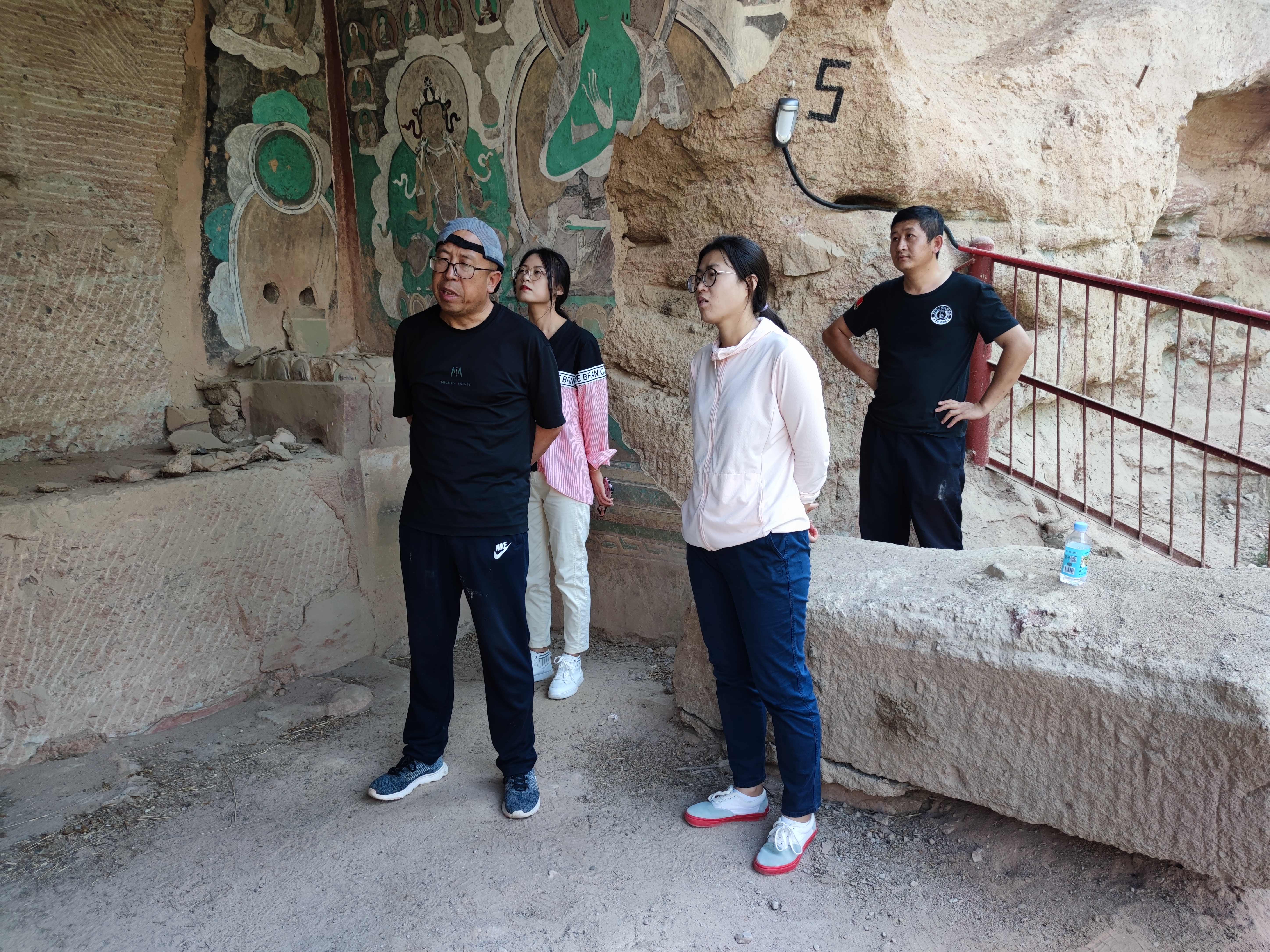 2021年7月8日,炳灵寺文物保护研究所副所长曹学文带领葡京新集团官网文物与博物馆专业的研究生们,前去炳灵寺石窟上寺区进行调研并做了《炳灵寺上寺区石窟壁画艺术》的专题报告。