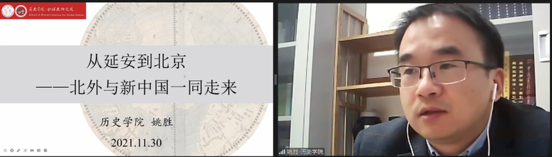 12月12日上午,北京外国语大学历史学院副院长、党委副书记姚胜副教授从校史研究的角度,讲述“从延安到北京——北外与新中国一同走来”。阐述校史研究的重要性。