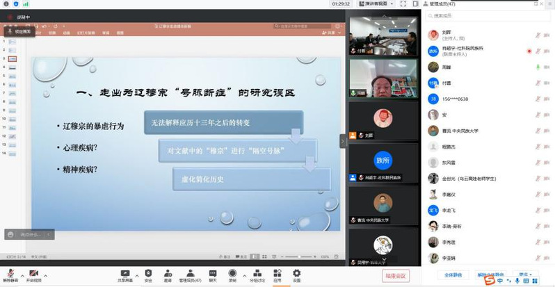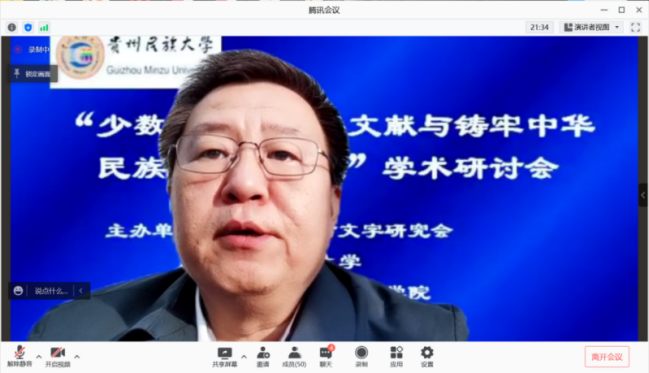 12月12日下午,中国民族史学会会长、中国社会科学院民族学与人类学研究所书记赵天晓就“少数民族历史文献与铸牢中华民族共同体意识”开展线上讲座。